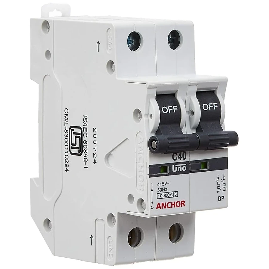 Double Pole (DP) Configuration: Features 2 Poles, providing simultaneous isolation and protection for both the live and neutral conductors in a single-phase system, ensuring complete safety.