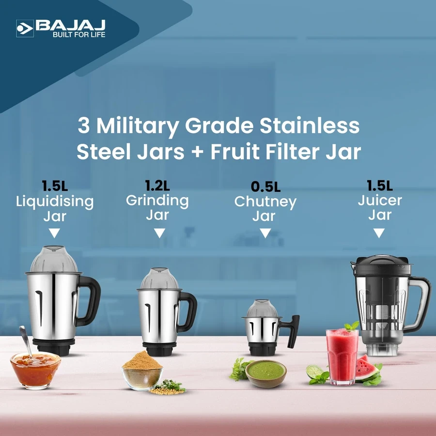 Premium 4-Jar Versatility: Includes a Liquidizing Jar, Grinding Jar, Chutney Jar, and a dedicated Blender Jar equipped with a Fruit Filter for crystal-clear juices and smoothies.