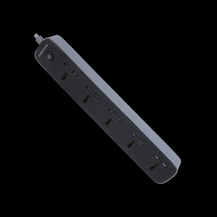 Digicom 5-Port Universal Logic: Engineered by Digicom with five universal 3-pin sockets that are fully adaptable to international plug standards, allowing for the connection of devices from any country.