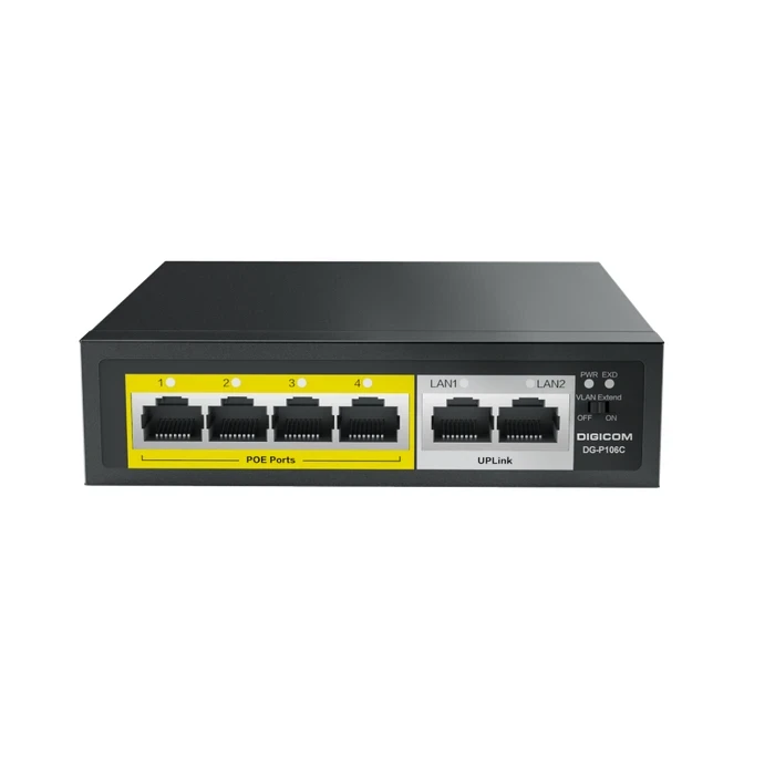 Digicom 4+2 Hybrid Logic: Engineered by Digicom with 4 dedicated POE ports for device power and 2 uplink ports to ensure a non-blocking connection to your primary router or NVR.