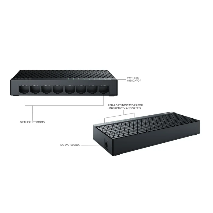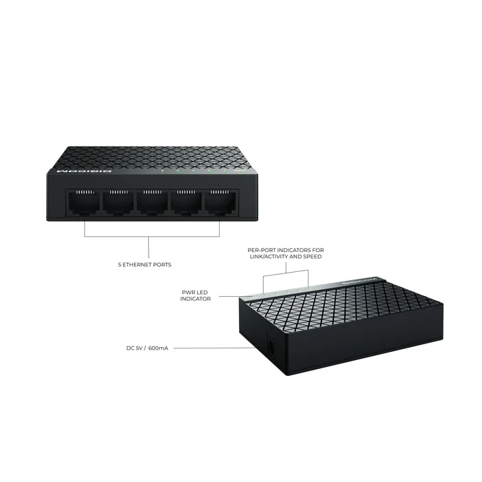 Digicom Auto-Negotiation Logic: Engineered by Digicom to automatically detect and configure the highest possible transmission speed and duplex mode between two nodes for seamless connectivity.