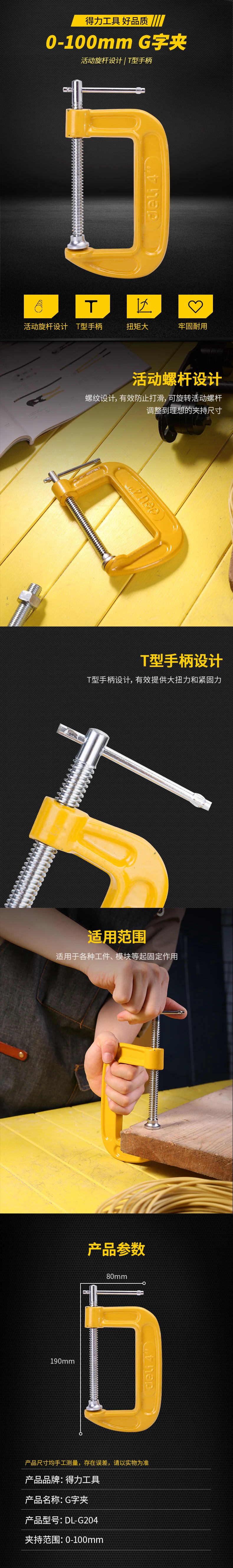 Reliable Holding: The classic G-Clamp (C-Clamp) structure guarantees solid, focused holding power, critical for quality gluing and temporary fixing in both woodworking and metal fabrication.