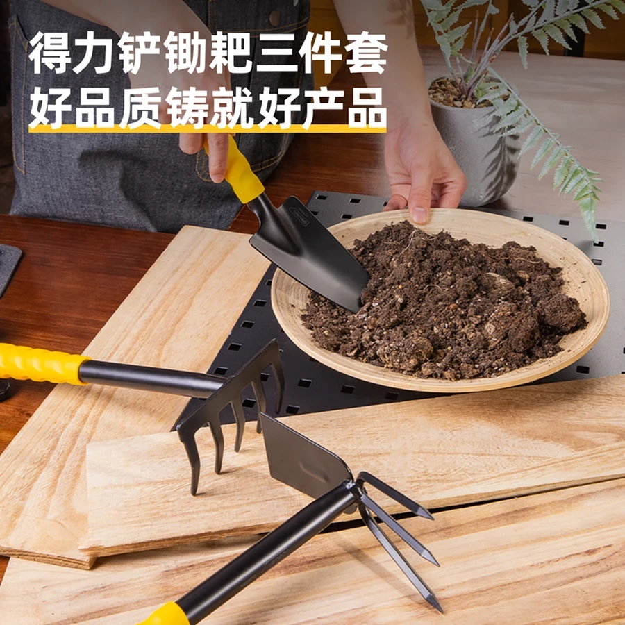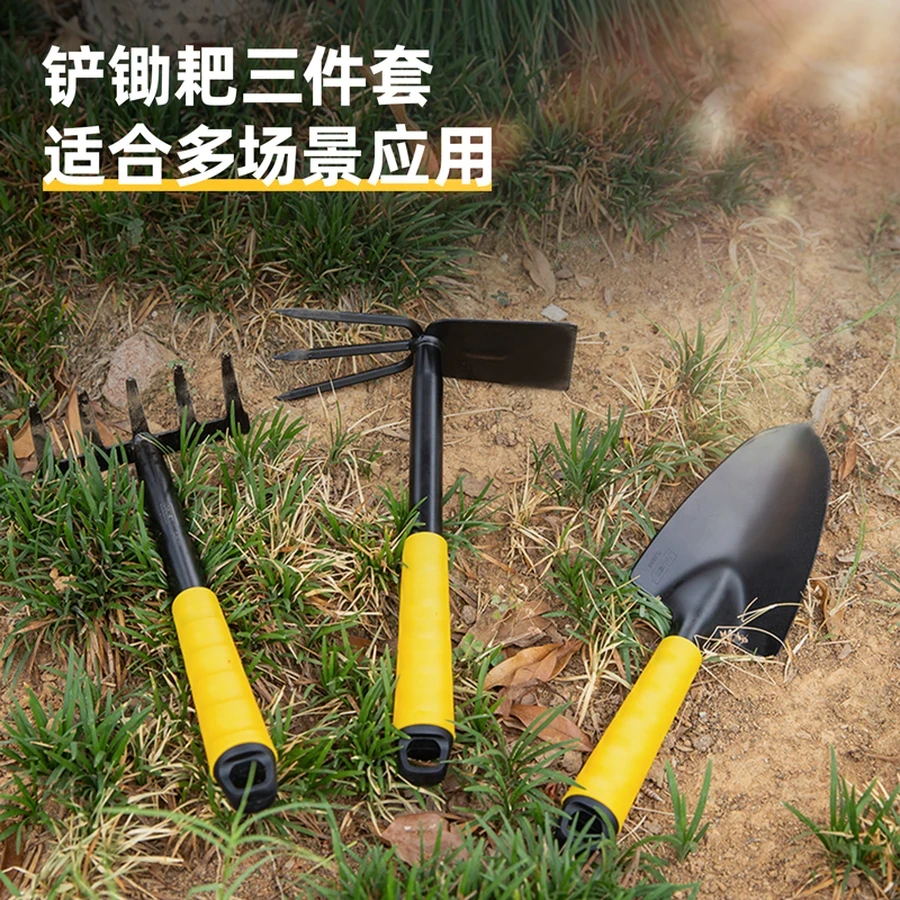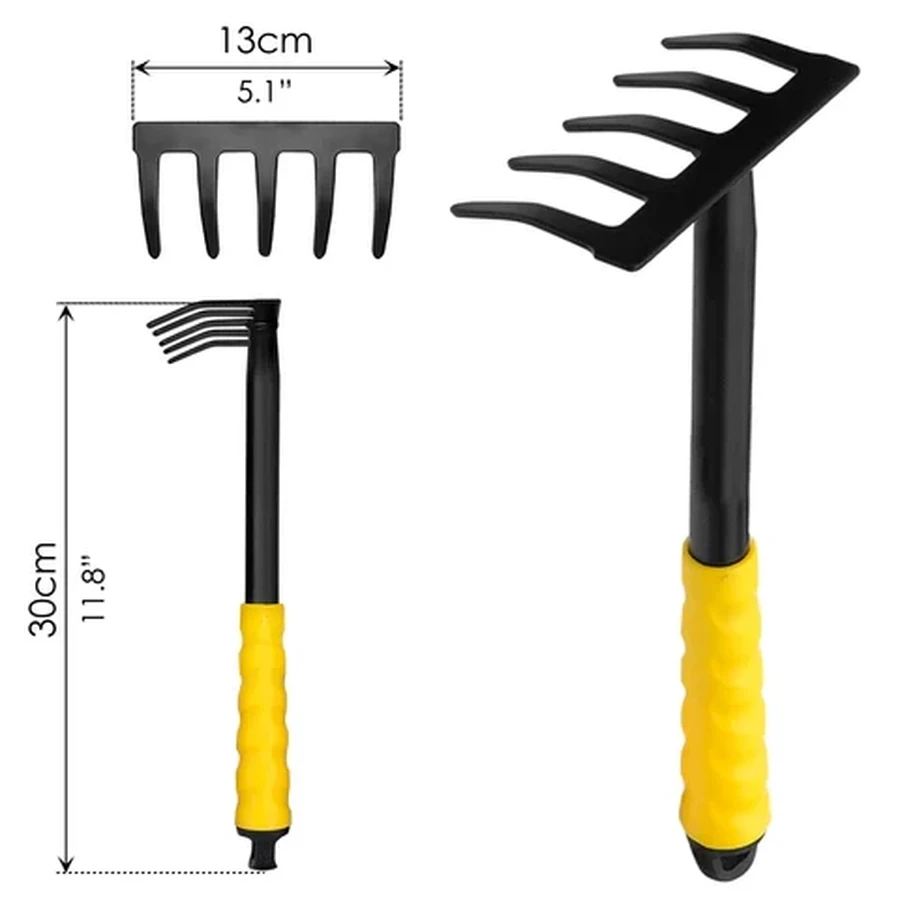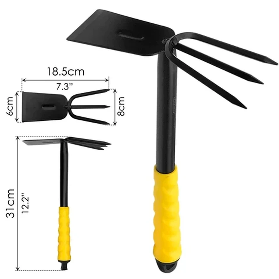 Essential Functions Covered: Allows for comprehensive soil work: Shovel for digging and transplanting; Hoe for weeding and chopping; and Harrow (Rake) for loosening and smoothing soil.