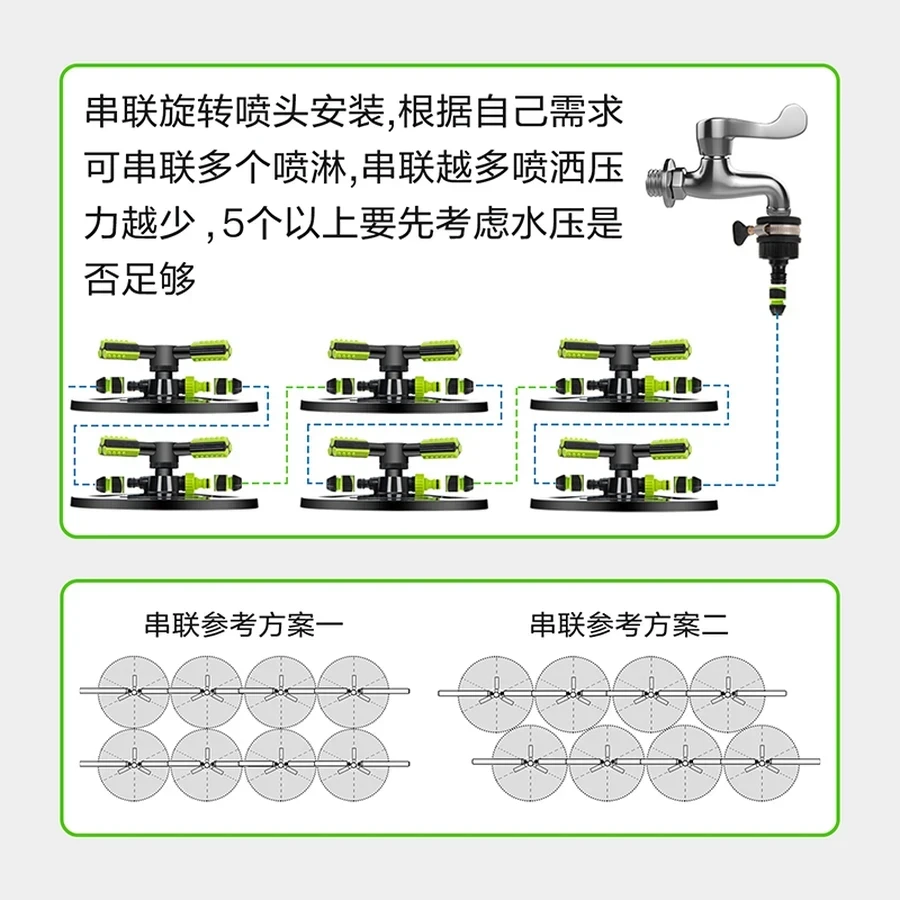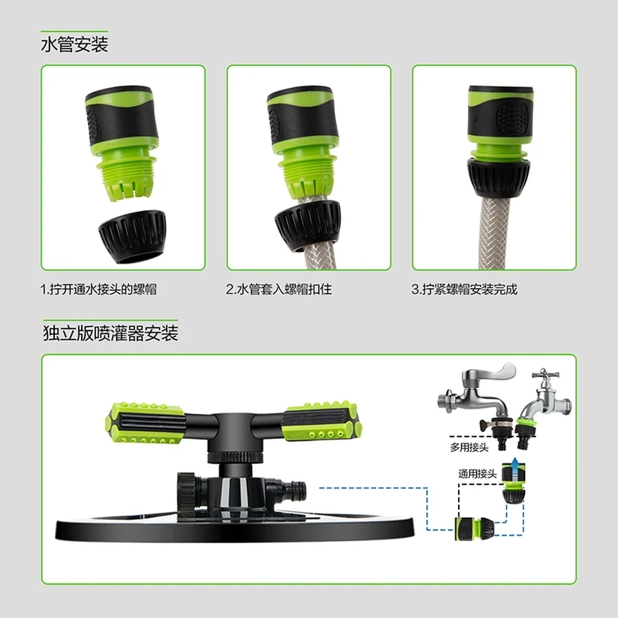Large Coverage Sprinkler: The included sprinkler features a (six outs) design (six outlets), ensuring a wide and even distribution of water across large areas of the lawn or garden.