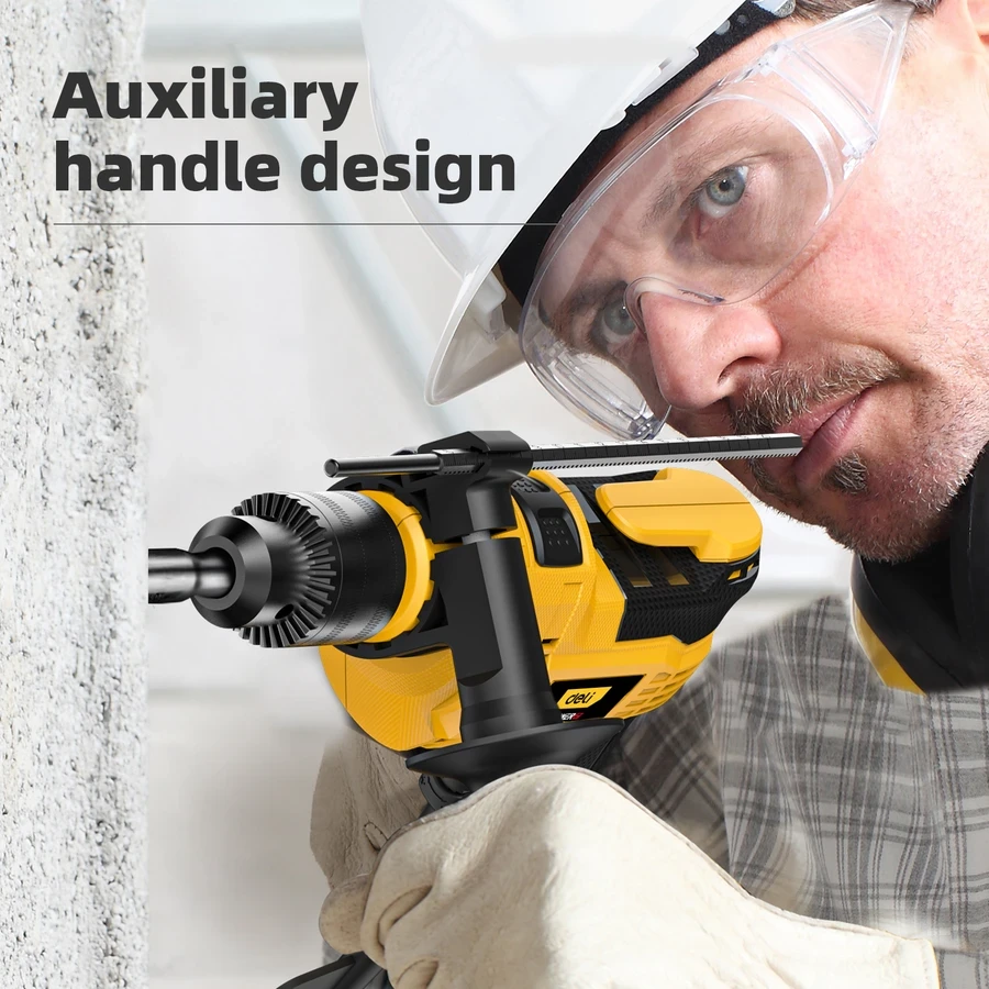 Dual Functionality: Features a One key switch for instant transition between flat drill (rotary only) and impact drill (hammer function), offering versatility for wood, steel, and masonry.