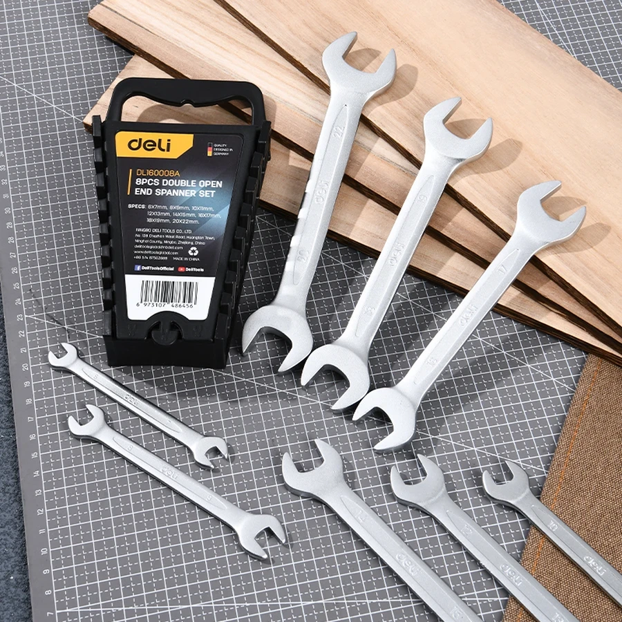 Core Tool Set: A compact 8 PCS set providing the essential sizes of double open-end spanners required for common household, automotive, and general repair tasks.