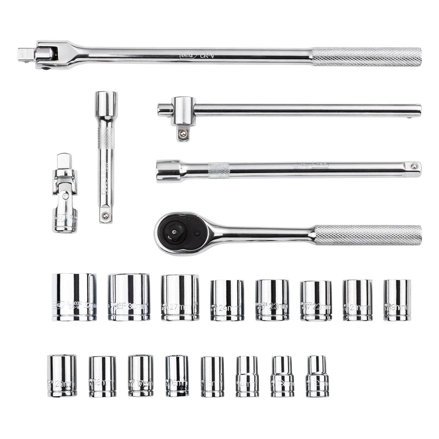 Comprehensive Socket Range: Includes 17 pieces of 12.5mm series sockets ranging from 10mm to 32mm, covering almost all standard metric automotive and industrial fasteners.