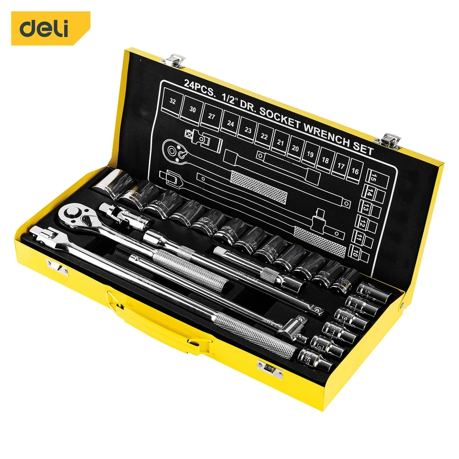 Complete 24-Piece Set: The full 24PCS/SET (includes Ratchet Wrench, Sliding T-Bar/Breaker Bar - Inferred) provides all necessary tools for professional mechanical and repair tasks.