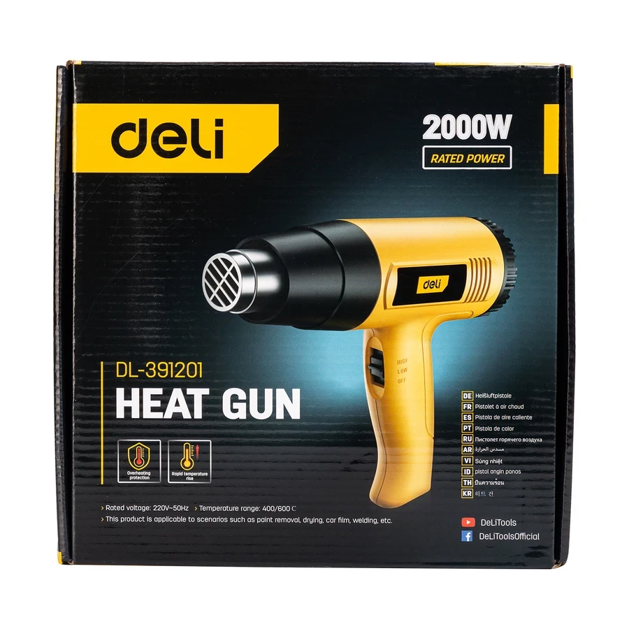 Variable Airflow: Features two airflow settings: 250 L/min and 400 L/min, allowing precise control over the heat output and application speed.