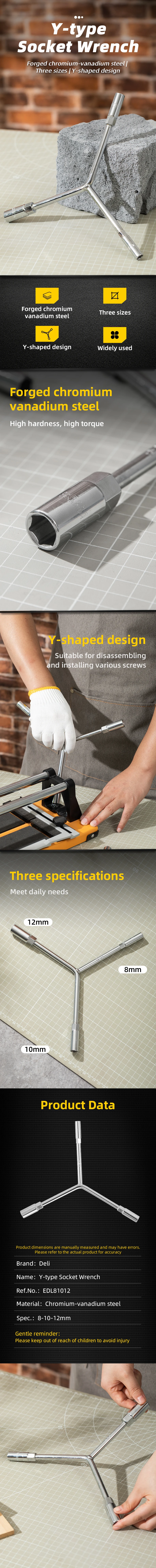 Essential Small Sizes: Combines the three most frequently used smaller sizes—8mm, 10mm, and 12mm sockets—into one convenient Y-Type tool, perfect for bicycles, small motors, and light assembly.