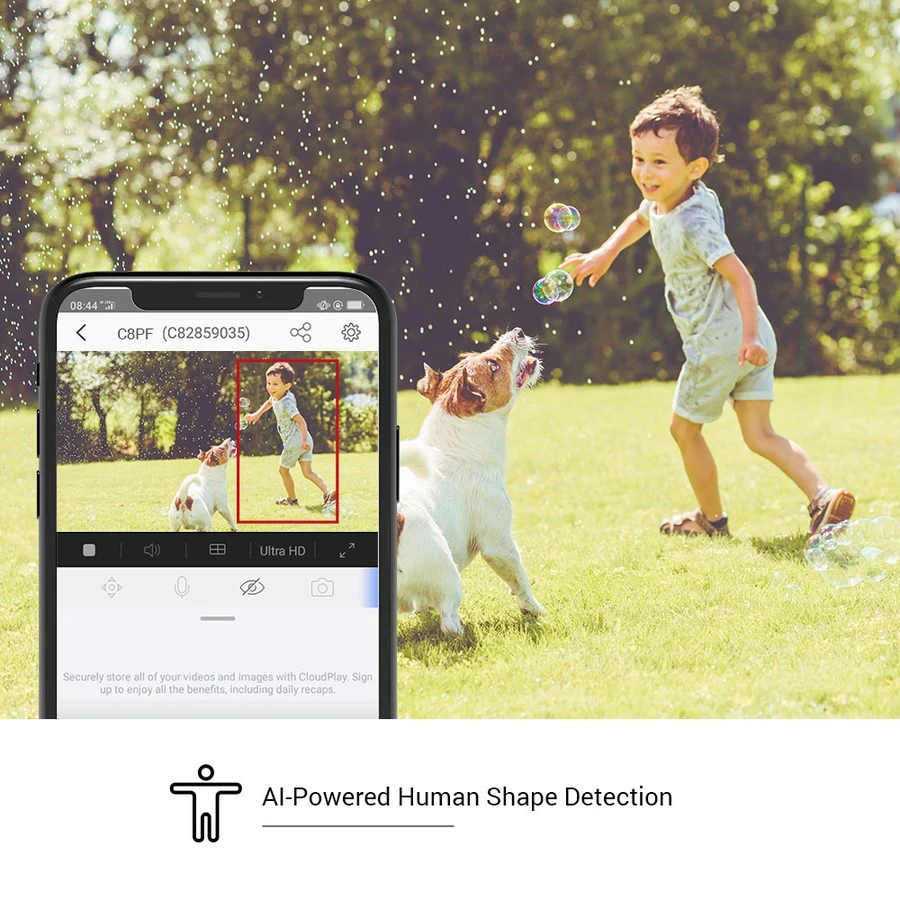 Intelligent AI Detection: Features AI Powered Human Shape Detection which accurately filters out false alarms caused by natural movements, focusing alerts on genuine security threats.