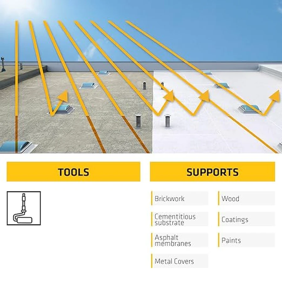 High-Flexibility Polymer Base: Features a highly elastic acrylic structure that easily accommodates the thermal expansion and contraction of roof surfaces without cracking or peeling.