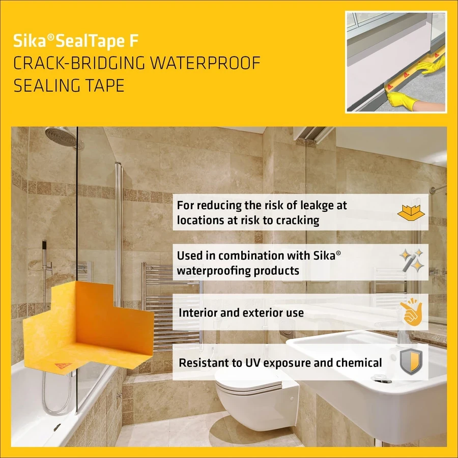 Seamless System Integration: Specifically designed to work in conjunction with Sika SealTape F strips to create a continuous and monolithic waterproof barrier for bathrooms and terraces.