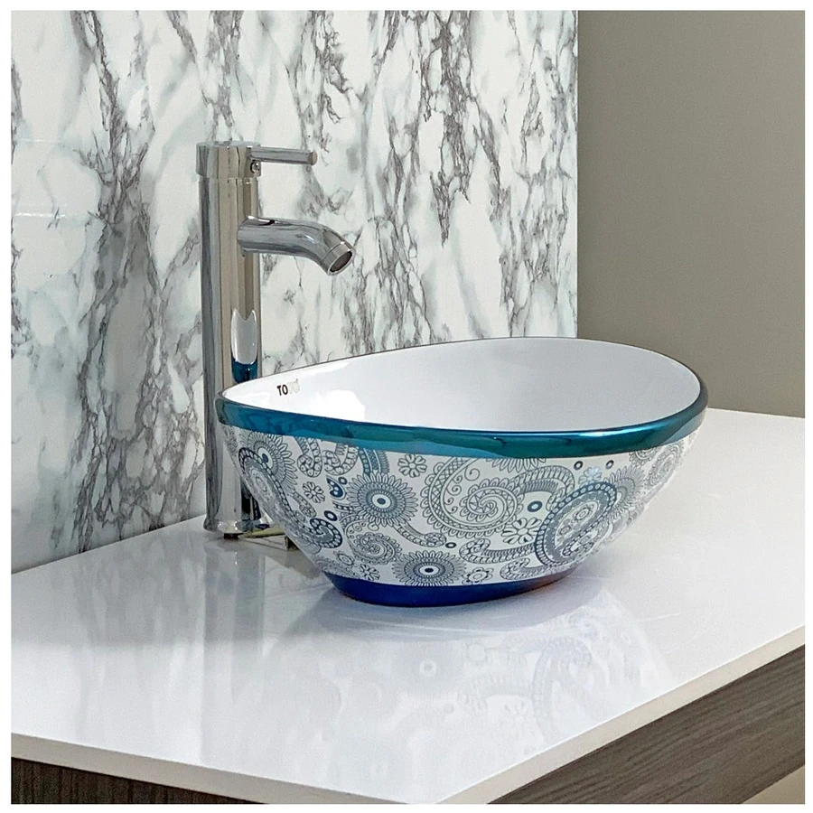 Clean Dual-Tone Finish: Features a contemporary White & Blue finish, offering a fresh, bright, and appealing look suitable for various bathroom styles, particularly modern or nautical themes.